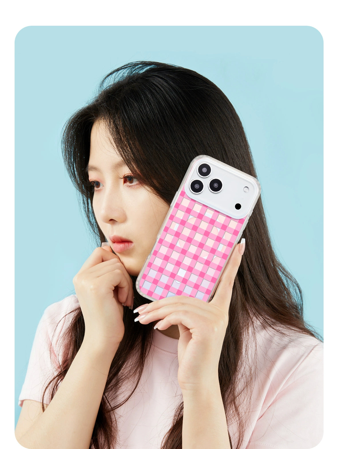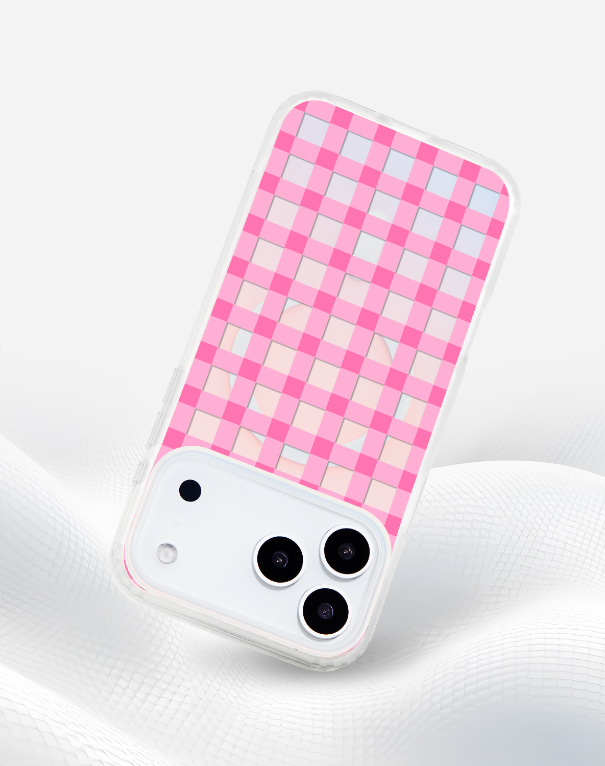 iCraftPro | Aesthetic Laser Grid Magnetic Case with Lanyard for iPhone 17 Pro Max - Trendy Pink, Also Fits iPhone 16/15/14/13/12 Pro