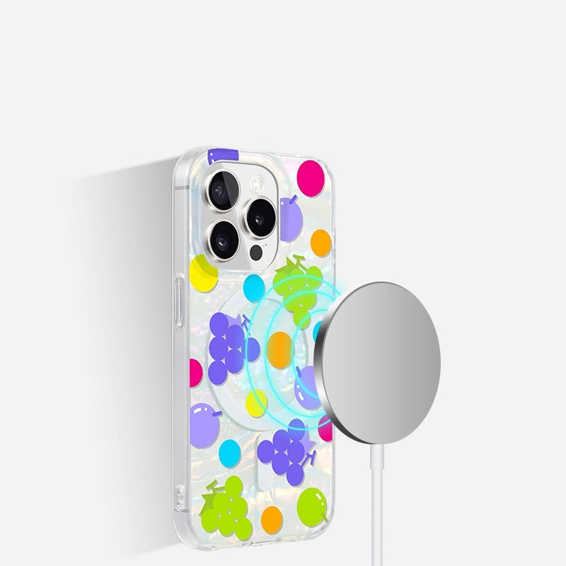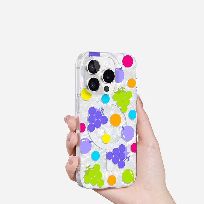 iCraftPro | Creative Pearl-Shell & Fruit Dots Case with MagSafe - for iPhone 13/14/15/16/17 Pro Max