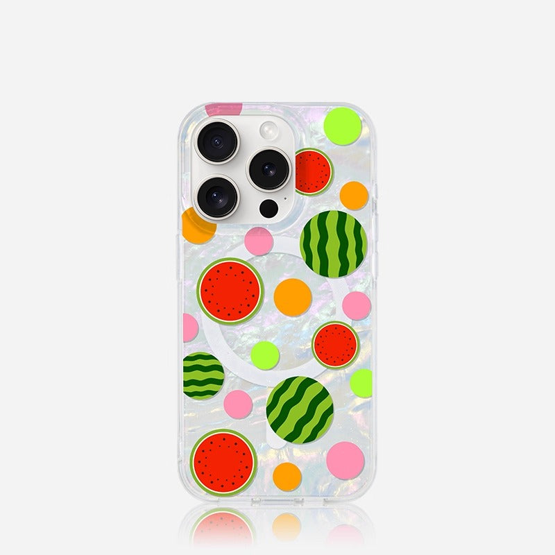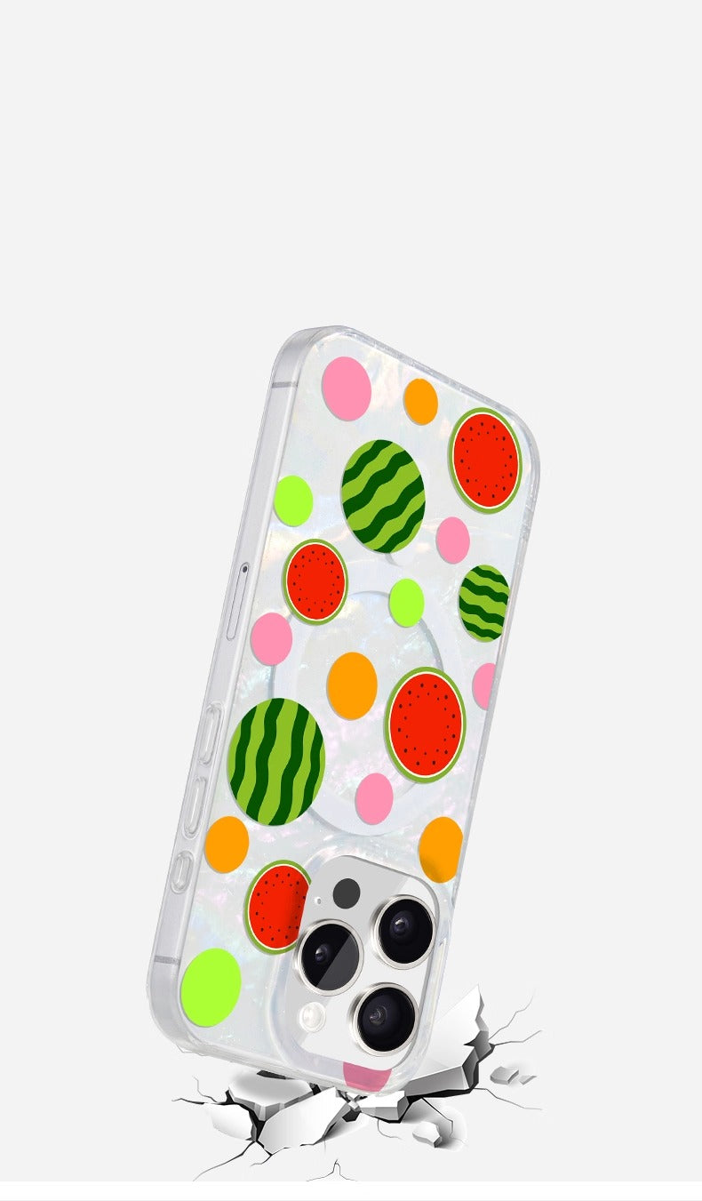 iCraftPro | Elegant MagSafe Case for iPhone 13-17 Pro Max: Pearlescent Waves & Fruit Dots Design