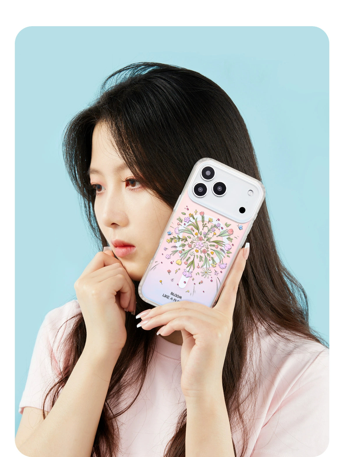 iCraftPro | Floral Holographic Case with Lanyard for iPhone 17 Pro Max, MagSafe Compatible