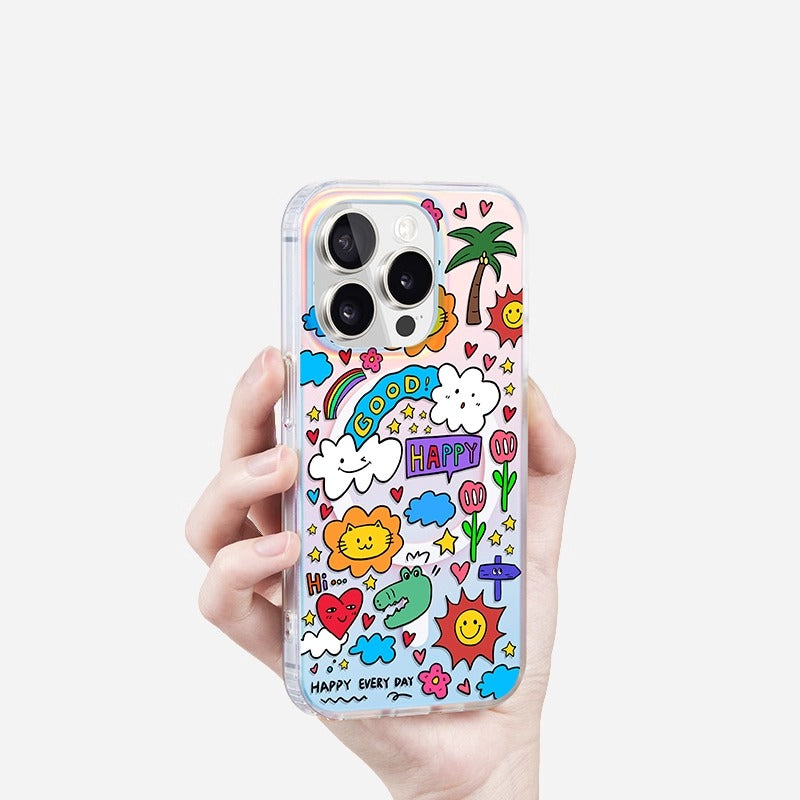 iCraftPro | Magnetic Case for iPhone 12-17 Pro Max | Cartoon "Happy Paradise" Design with Laser Gradient, Cute & Protective