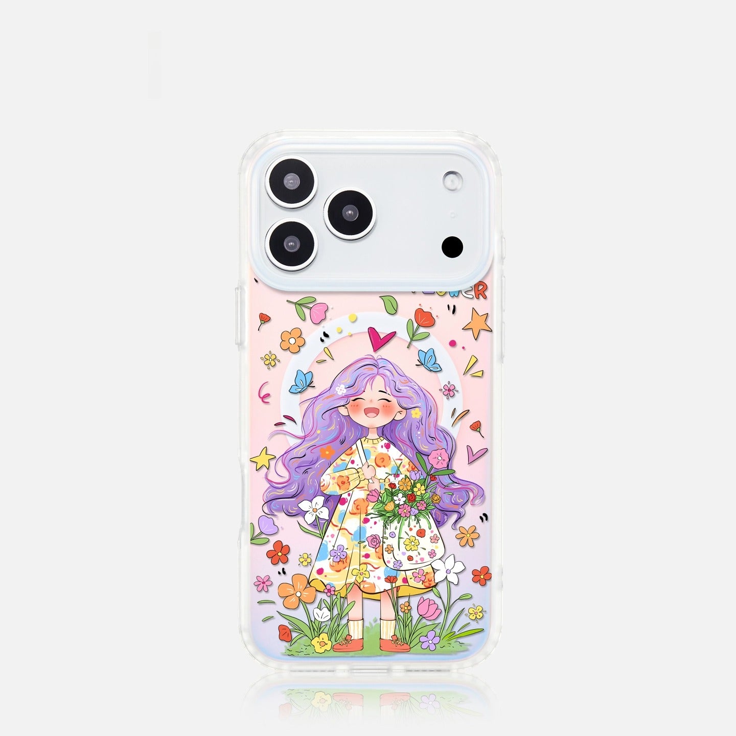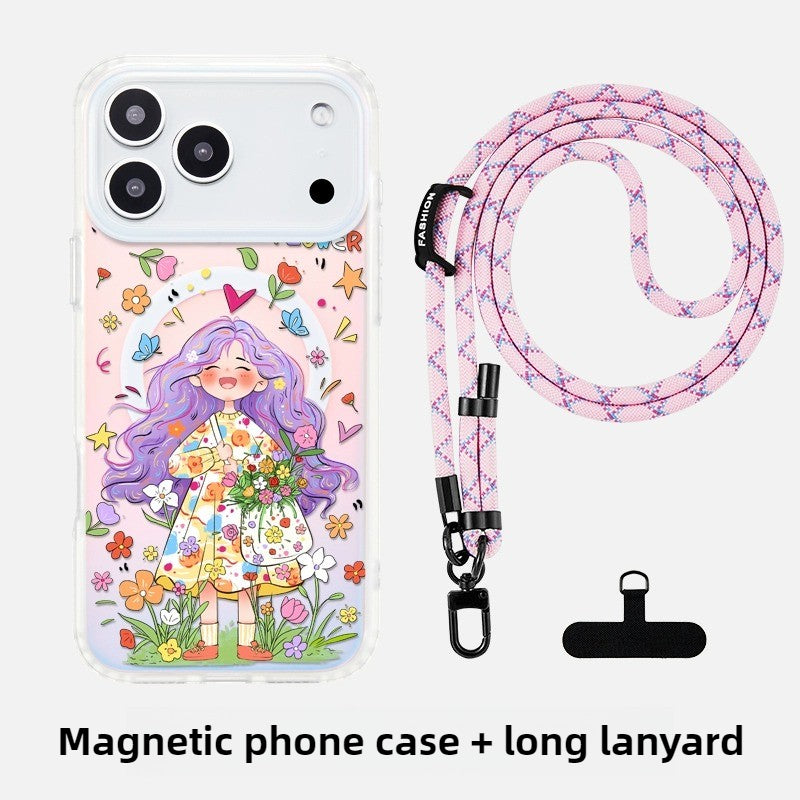 iCraftPro | Magnetic Gradient Holographic Case with Lanyard for iPhone 17 Pro Max - Unique Cartoon Girl Design