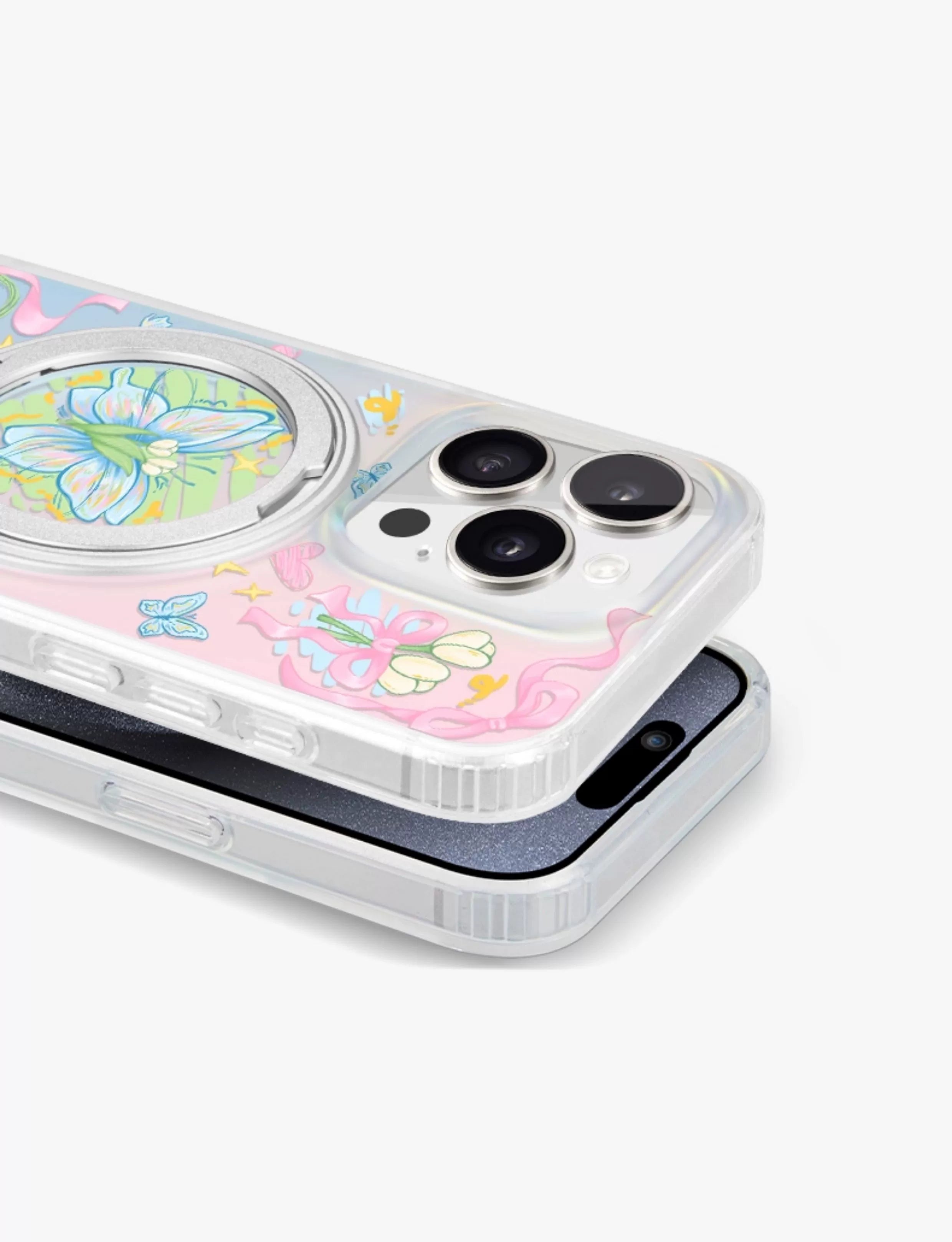 iCraftPro | Magnetic Magsafe Case with Stand & Frosted Tulip Butterfly for iPhone 13/14/15/16/17 Pro Max