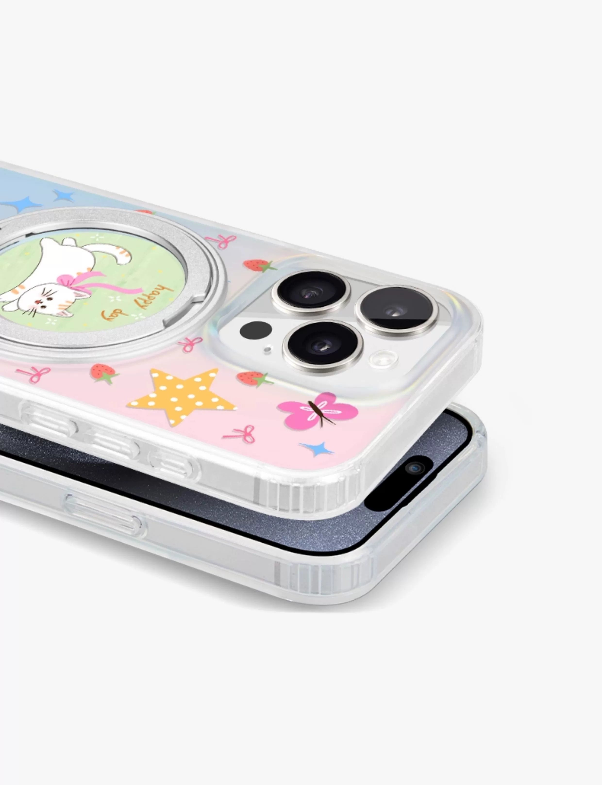 iCraftPro | Magnetic Phone Case with Stand for iPhone 13-17 Pro/Pro Max | Laser Gradient & Cute Cat Design
