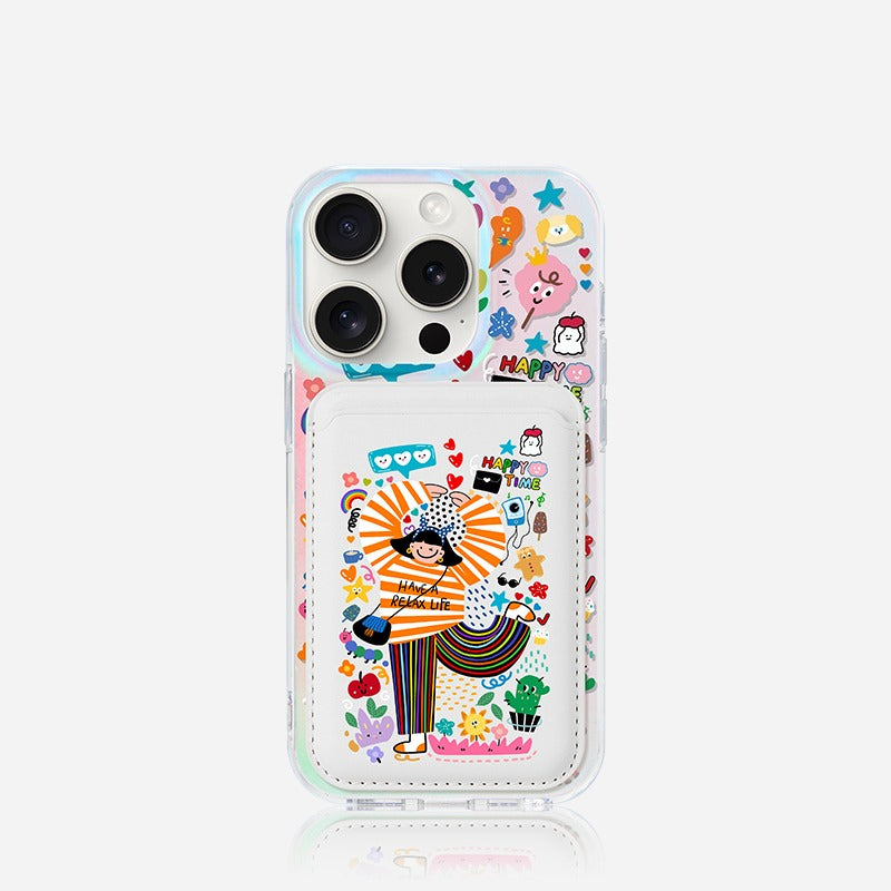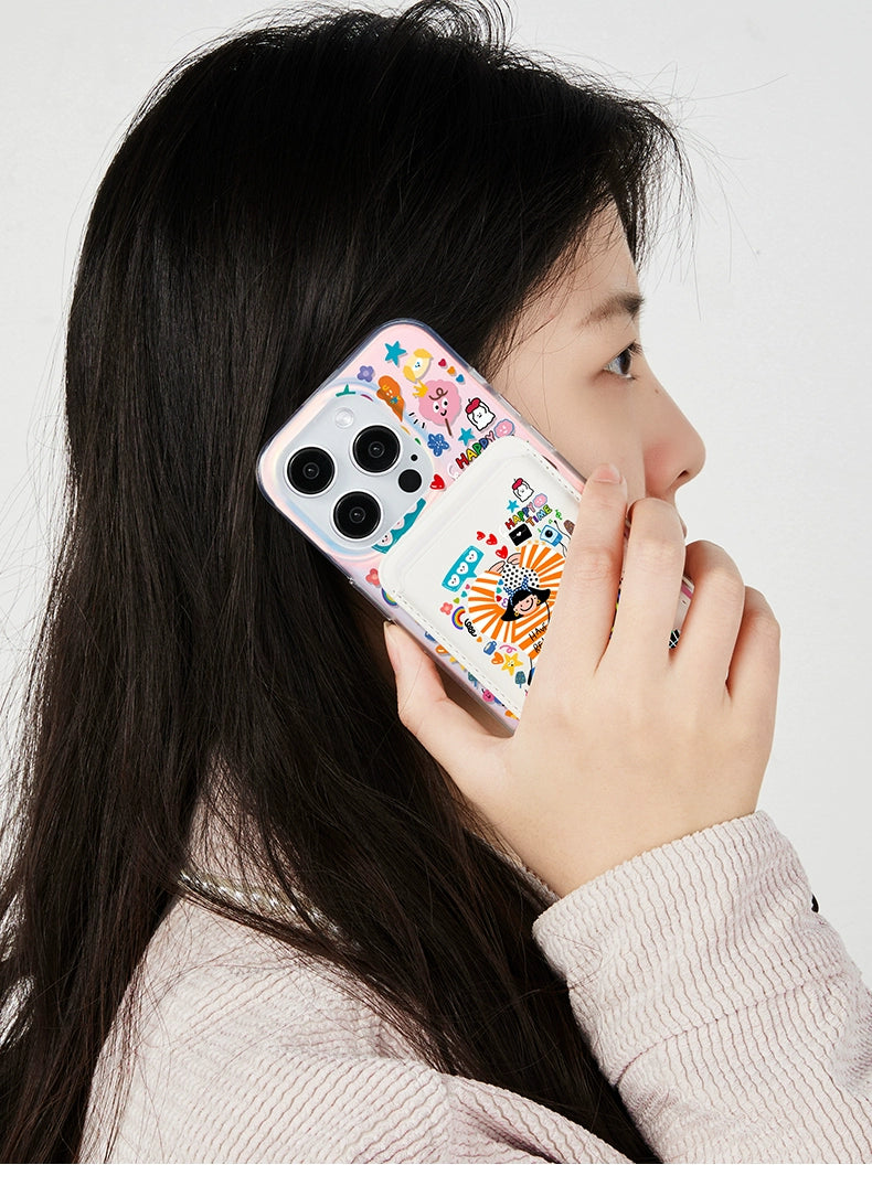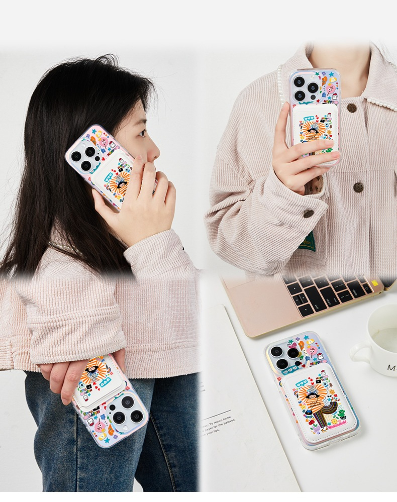 iCraftPro | MagSafe Case with Card Holder - Frosted Holographic & Cartoon for Apple 17ProMax 16Pro 15 14 13 12