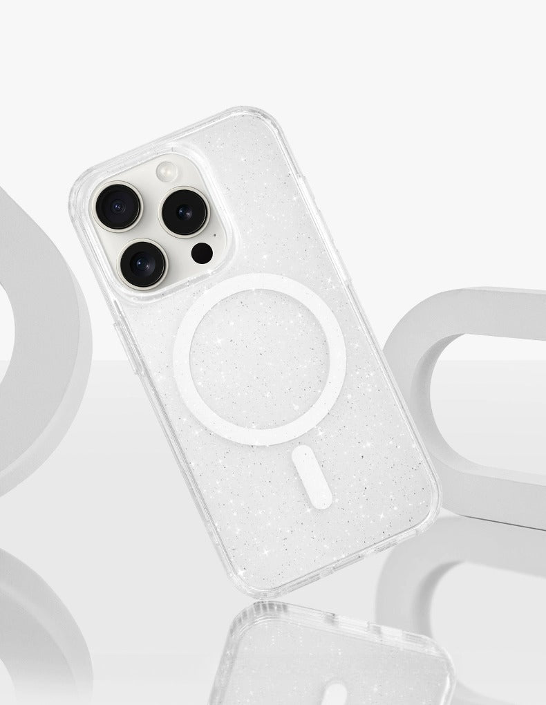 iCraftPro | Magsafe Compatible Case for iPhone 15 Pro Max 14 13 12, Translucent Shimmering Glitter Cover, Stylish Protective Shell for Women