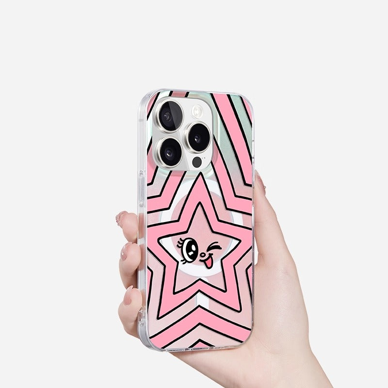 iCraftPro | Magsafe Holographic Gradient iPhone Case with Unique Star Design - Stylish & Premium Cover for iPhone 12 to 17 Pro Max