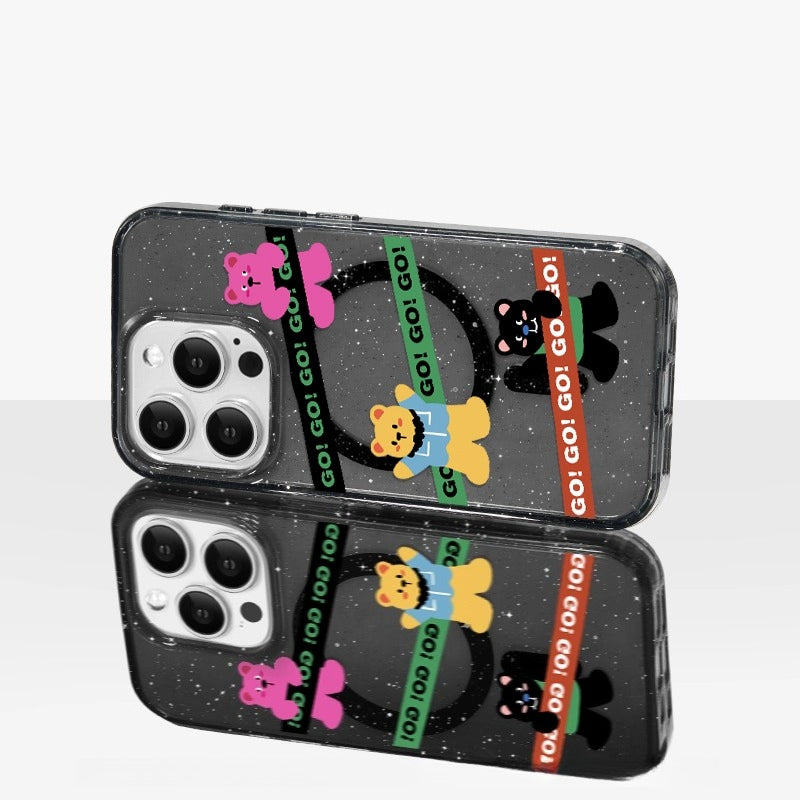 iCraftPro | Sparkling Glitter Case for Apple iPhone 16/15 Pro Max, Adorable Cartoon Bear with Lanyard, MagSafe Magnetic Cover