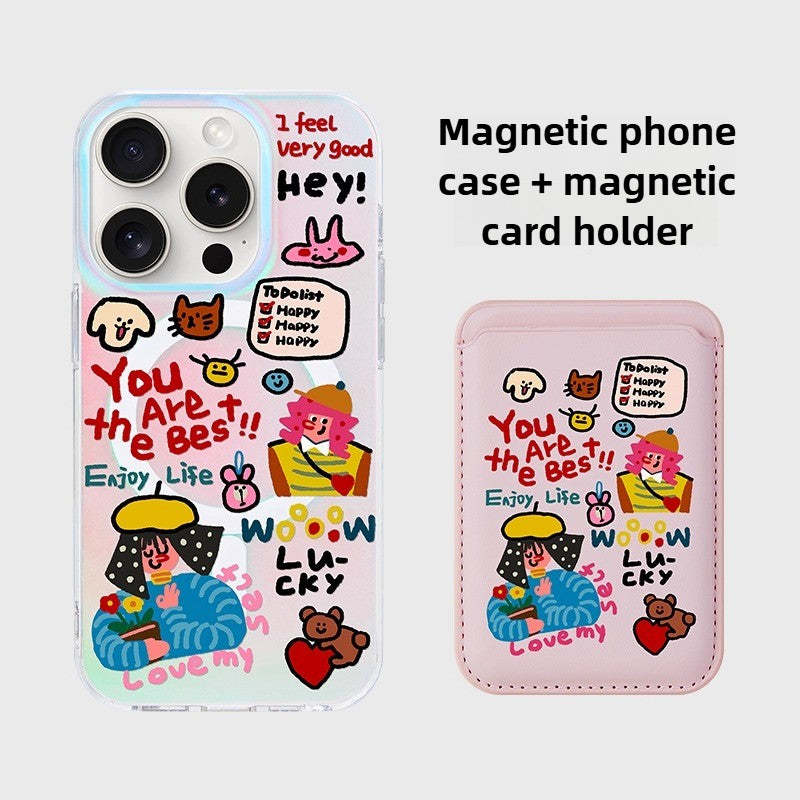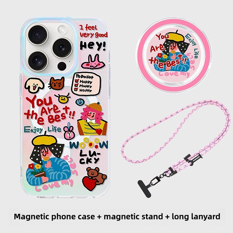 iCraftPro | Unique Cute Creative Case, Holographic Gradient with Magnetic Strap for iPhone 12 to 17 Pro Max